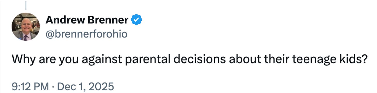 Senator Andrew Brenner, for example, claimed that SB 50 is about parents’ rights.