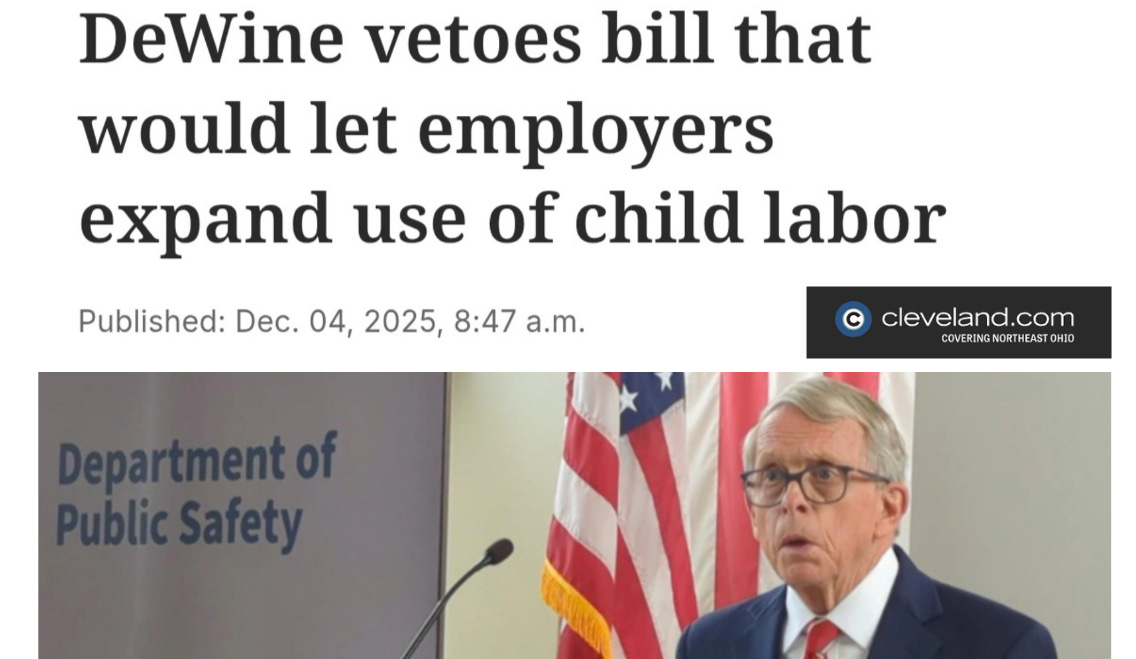 Governor DeWine heard your calls and paid attention. He VETOED Ohio Republicans’ bill to weaken child labor laws!