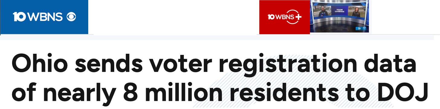 Today we learned that Ohio’s Republican Secretary of State, Frank LaRose, “has turned over the voter registration data of nearly 8 million Ohioans to the U.S. Department of Justice.”