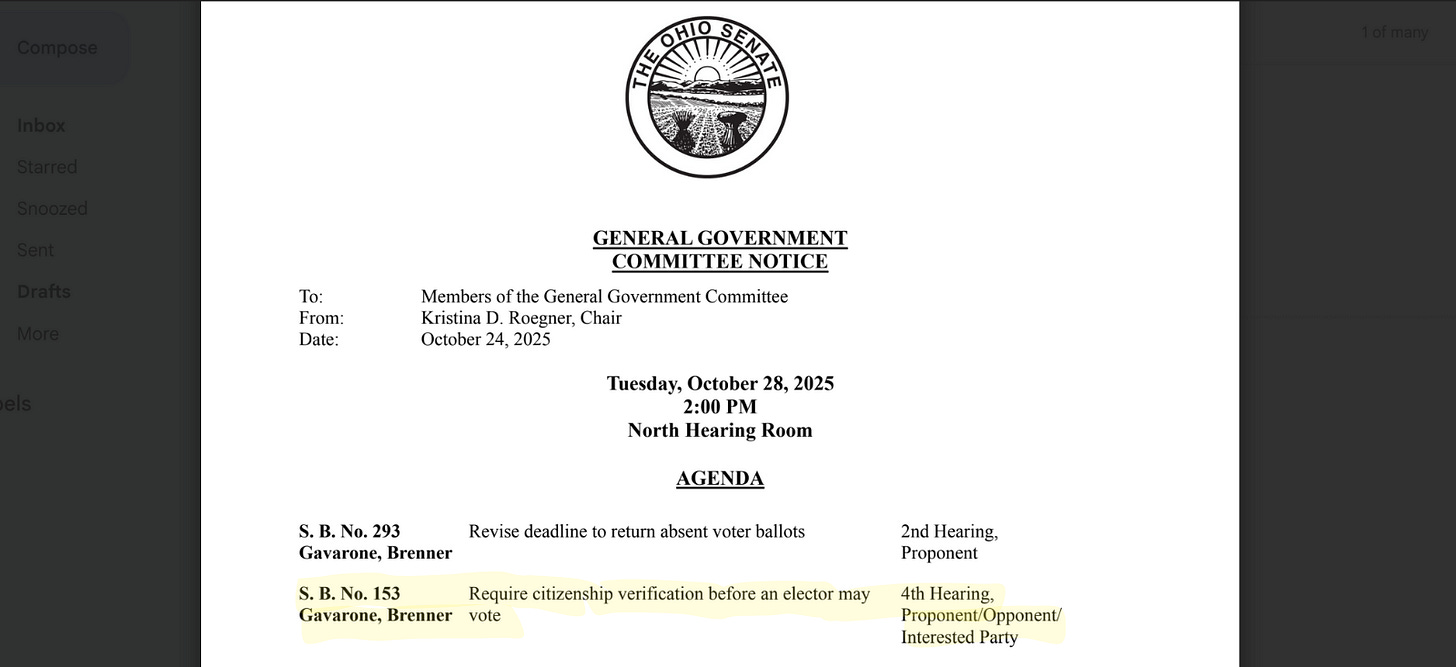 Do not let SB 153 (Ohio’s SAVE Act) pass through the Senate General Government Committee